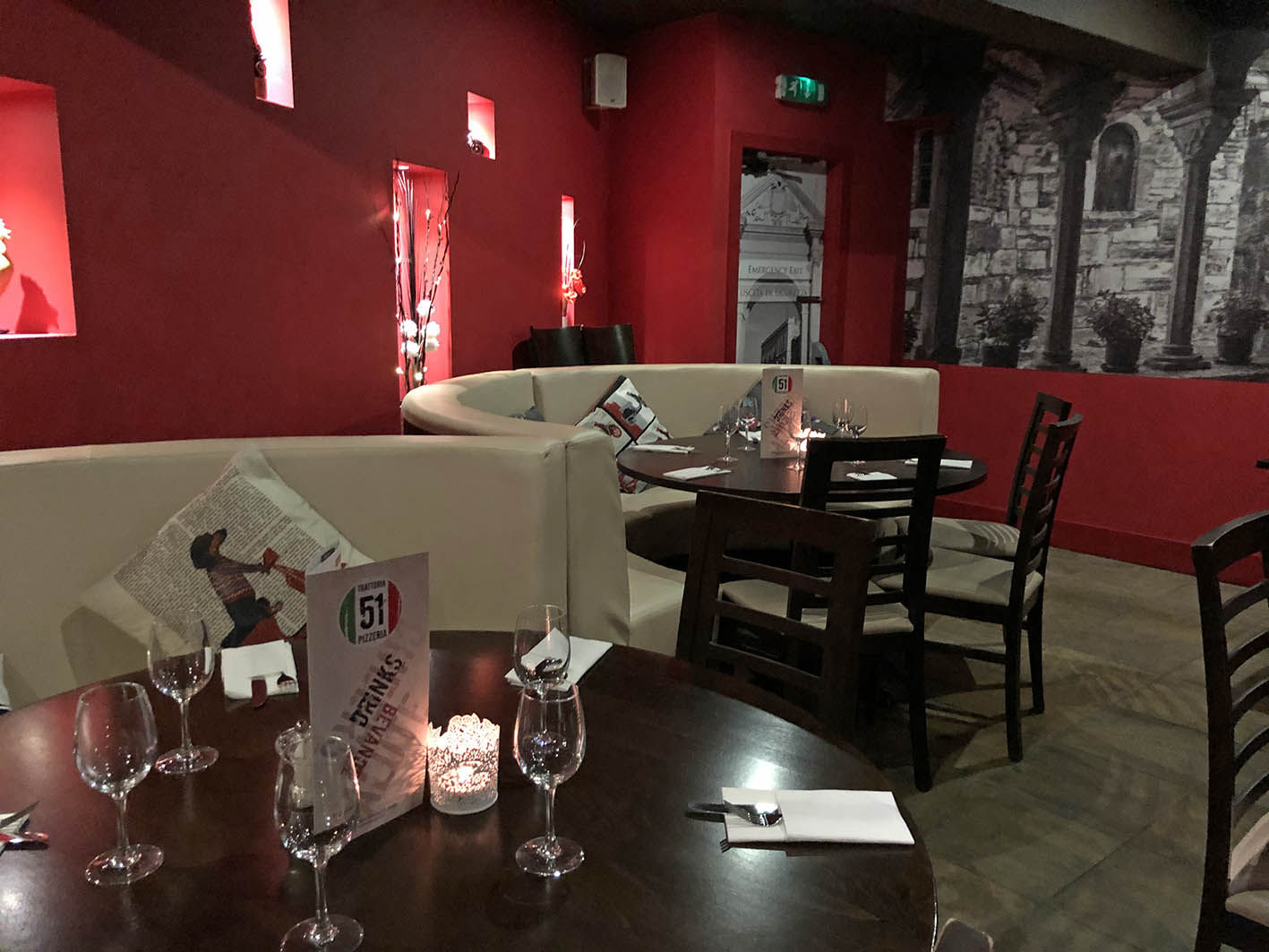 Our signature tri-colour lighting and a warm Italian inspired decor mean you know you're in Trattoria 51!